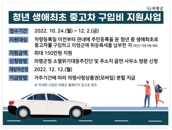 전국 최초로 청년 중고차 구매비용을 지원해주는데요.
