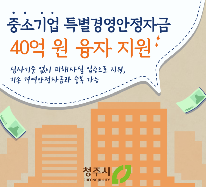 청주시는 코로나19 장기화와 경기침체로 인해 어려움을 겪는 중소기업에 ‘3·3·3 특별경영안정자금’을 40억 원을 지원하고 있습니다.