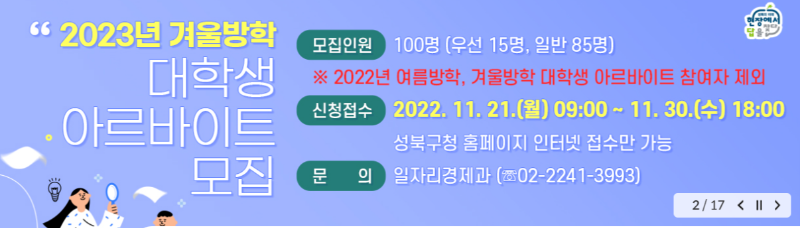 성북구에서 겨울방학 대학생 아르바이트를 모집합니다!