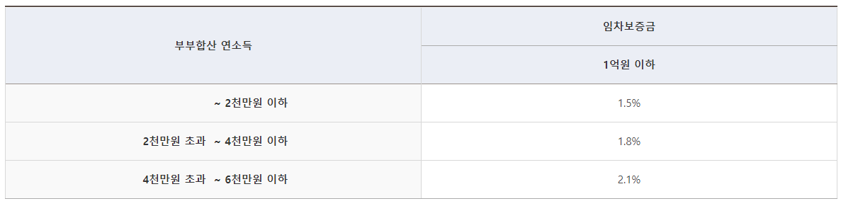 * 만 25세미만 단독세대주는 1.5억원 이하